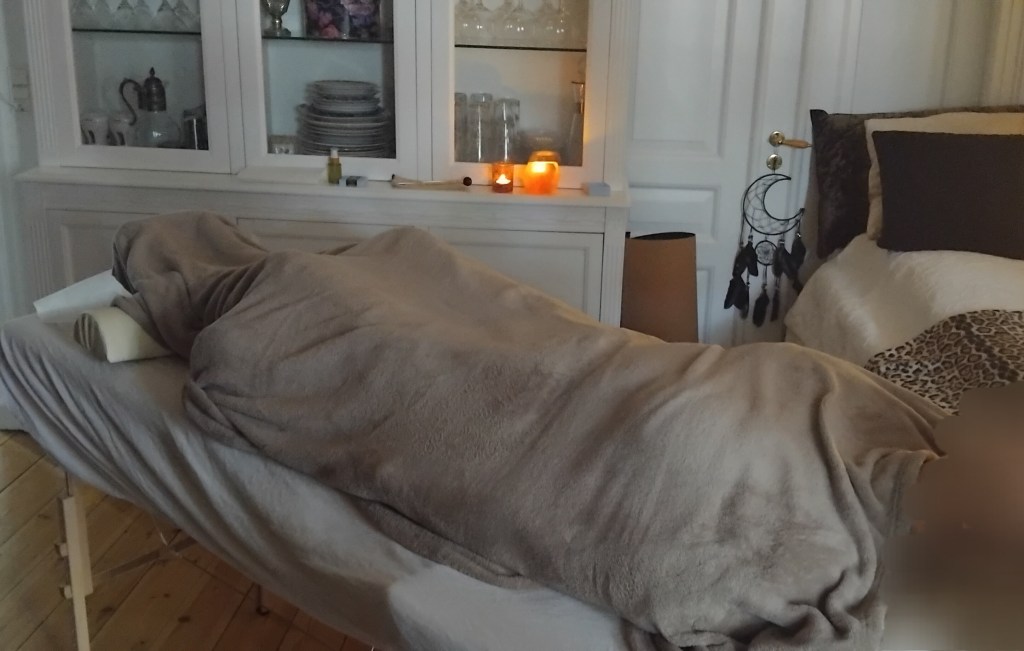 Healingsmassage foregår i et trygt rum med fokus på nærvær, ro og dyb afslapning.